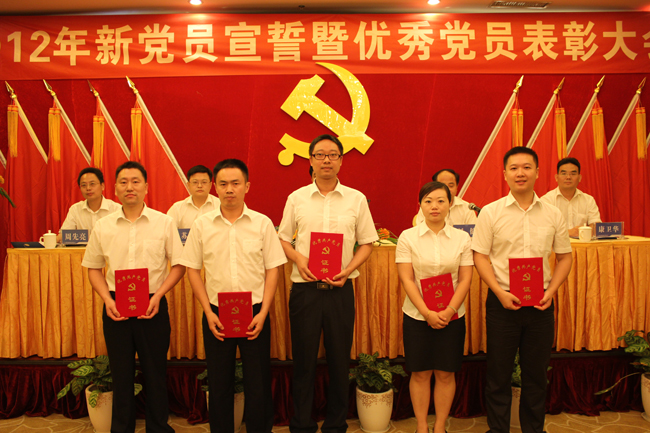 公司黨委書記楊國平作重要講話。他代表公司黨委向獲得優(yōu)秀黨員稱號的同志表示祝賀,向剛剛加入到黨的隊伍中來的新黨員表示熱烈的歡迎。楊國平董事長就創(chuàng)先爭優(yōu),進一步加強黨組織建設(shè),促進公司又好又快發(fā)展講了三點意見:一是抓好創(chuàng)先爭優(yōu),促進公司科學(xué)發(fā)展;二是加強黨員自身建設(shè),提升公司人才實力;三是加強黨風(fēng)廉政建設(shè),樹立黨員的良好形象。要求全體黨員以受到表彰的同志為榜樣,堅持黨的根本宗旨,堅持科學(xué)發(fā)展觀,振奮精神,同心同德,真抓實干,開拓創(chuàng)新,以爭創(chuàng)一流的精神狀態(tài)和卓有成效的工作業(yè)績來促進公司又好又快發(fā)展,為長株潭“兩型社會”建設(shè)和湖南的發(fā)展貢獻新的更多力量,以優(yōu)異的業(yè)績向黨的十八大勝利召開獻禮。